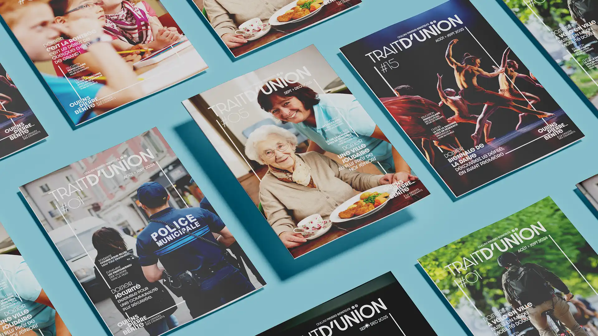 En complément de la création du logo d’Oullins-Pierre-Bénite et de sa charte graphique, la Ville nous a confié la conception de la maquette de mise en page du magazine municipal. En tant que graphiste, notre mission a été d’imaginer un système éditorial souple, clair et immédiatement appropriable par l’équipe communication, afin d’assurer une fabrication fluide de chaque numéro, quels que soient les contenus et les délais.